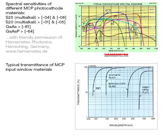 ▲ various MCP photocathodes – multialkali, S20, GaAs, GaAsP