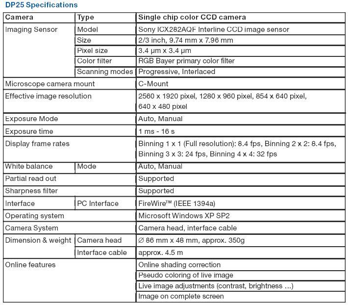 올림푸스의 DP25는 넓은 범위의 과학적인 현미경 이미지 수집을 위한 보고서 및 분석에 사용이 손 쉽게 조작가능한 디지털 카메라 입니다. 고 해상력, 빠른 Frame 속도 또한 색의 표현력이 우수하며 현미경 작업에 효과가 있음을 자신할 수 있습니다.