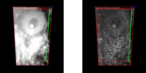 The deconvolution routine used by SharpStack Plus makes use of the Maximum Likelihood Estimation algorithm. A blind PSF models the characteristics of the objective lens used to collect the image and creates a theoretical representation of blurring in the optical system. This blurring function is then used as the basis for restoring signal in the volume. The routine does not omit signal to improve resolution, providing sharp, clear and quantitatively accurate details of previously obscured structures.