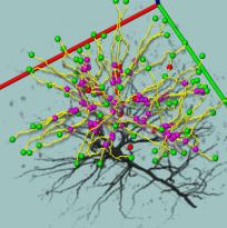 Analyze neurons and other filament structures with the neuron tracing tool in 3D Constructor. Visualize and count the number of branches in a neuron as well as the length and volume of each branch.