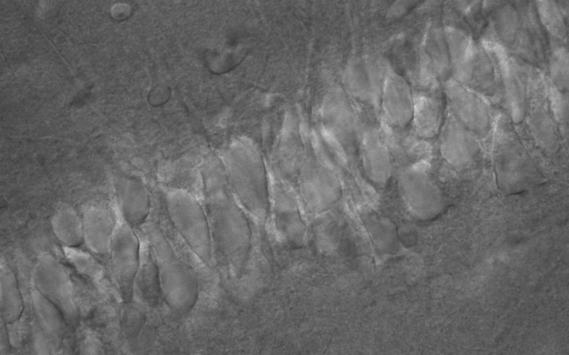 하단의 이미지는 NIKON의 FN1 현미경의 DIC 세팅을 바르게 맞춘 후의 이미지이다. 상대적으로 OLYMUS의 BX-WI의 Image에 비교하면 미세영역의 분해가 제대로 되지 않은 이미지 임을 알 수 있다.