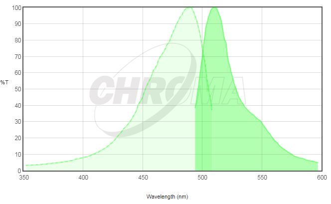 | Filter Model No. | Excitation filter (㎚) | Dichroic mirror (㎚) | Emission filter (㎚) | Remarks |