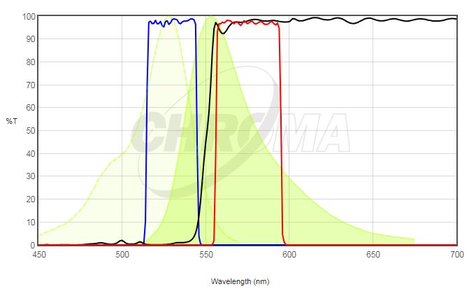 - Round excitation and emission filters mounted in anodized aluminum rings 2.3mm thick, up to 25mm in diameter