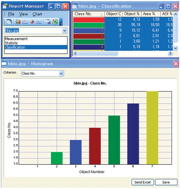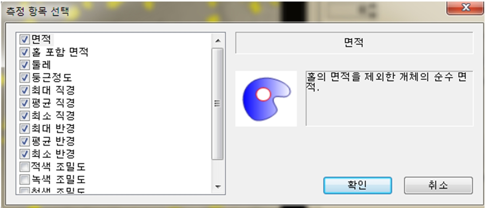 – 면적, 면적비, 반경, 직경등 15개 항목 자동측정