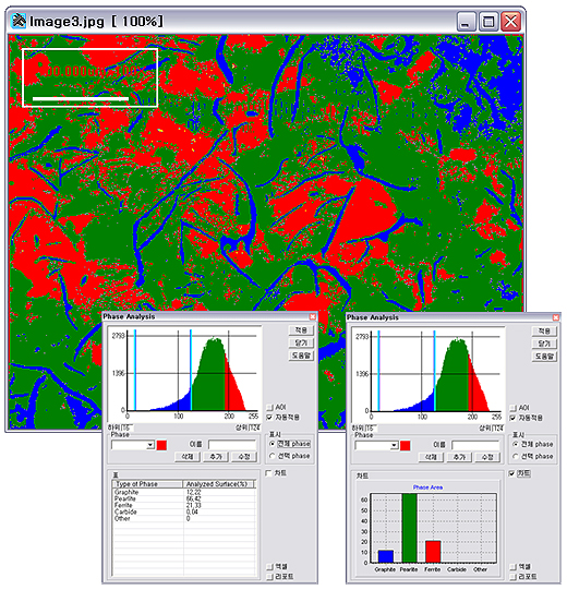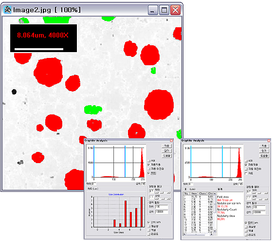 TDI Plus에 Material 분석 기능을 추가하여 Grain Size, Phase, Microhardness, Nodular Cast Iron의 Graphite, Thickness 분석이 가능한 고급 이미지 분석 프로그램입니다.
