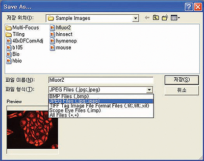 ▶ JPEG, BMP,TIF,IMP(ScopeEye 자체 파일 포맷)등 다양한 파일 포맷 지원