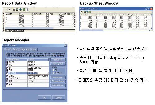 * 이미지와 측정 데이터를 Microsoft Excel로 전송