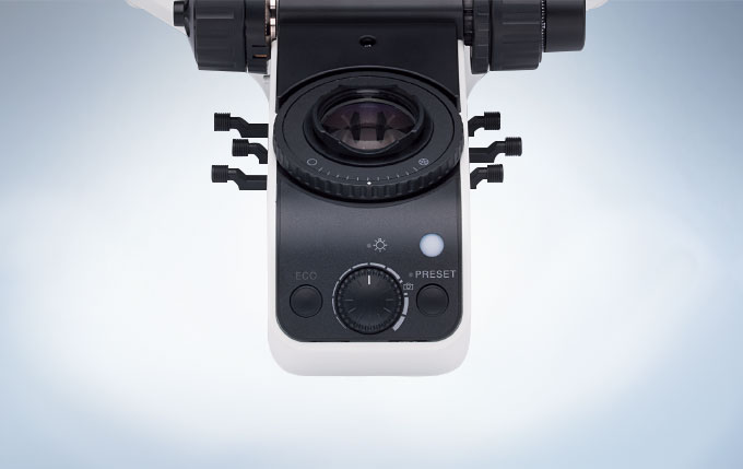 각 사용자는 고유한 자세 및 장비 배치에 대한 요구가 있으므로, 작업 환경의 개인화뿐만 아니라 현미경 조절을 통한 인체공학적 환경을 제공하는 것은 자세 혹은 반복되는 스트레스로 인한 부상이 없도록 하여 장기간의 현미경 사용이 가능하도록 합니다. 최대의 시스템 유연성 및 사용자 편이를 위해, 기울기 조절 가능한 인체 공학적 삼안 경통 튜브는 접안렌즈 높이 조절뿐만 아니라 눈동자 간 거리 조절이 가능하고, 광로 슬라이더는 경통 튜브 어느 쪽에도 부착이 가능하며, 사용자가 현미경 전체를 제어할 수 있도록 하고 자신의 자세에 맞춰 현미경을 조절하는 것을 보장합니다.