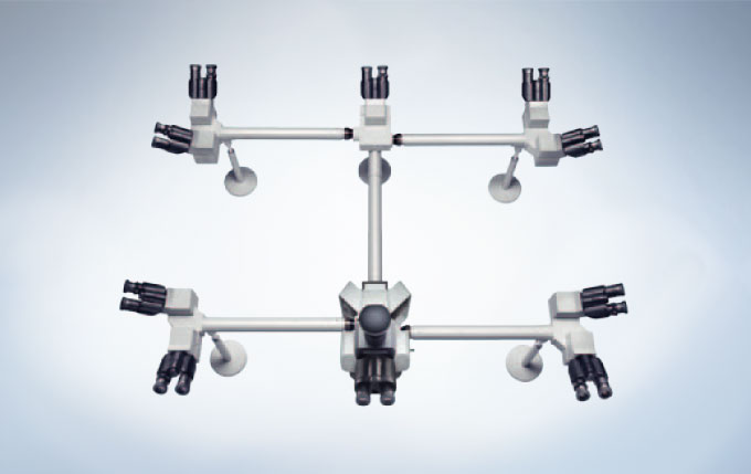 인체 공학적인 이안 경통, 삼안 경통 뿐만 아니라 Olympus는 사용자에게 최적화된 실험실 토론을 위한 이인, 다중 관찰용 연결 장치를 제공합니다. 이 시스템은 모든 그룹이 각자의 접안렌즈로 동시에 표본을 관찰하면서 토론이 가능하므로 임상학적, 교육적 관찰에 매우 적합합니다. 폭 넓은 선택 가능성으로 2 ~ 10명 혹은 그 이상의 동시 관찰을 지원합니다.