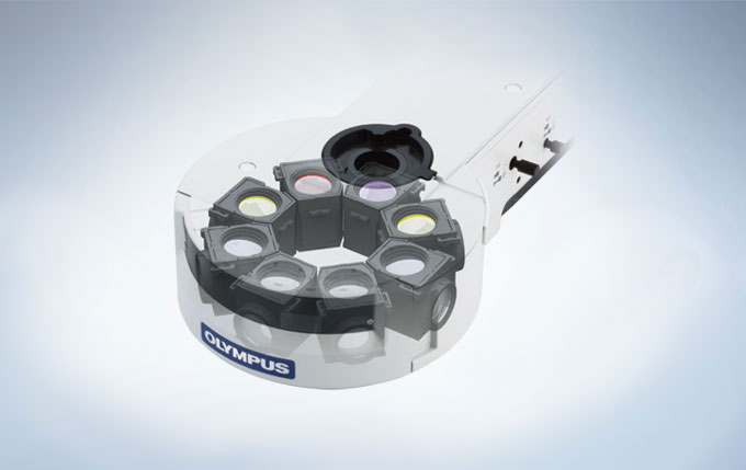 Olympus의 8구 형광(Fluorescence)조명장치는 쉬운 교체가 가능한 미러 유닛과 함께 형광(Fluorescence) 시료들의 넓은 다양성에 맞추어 높은 유연성을 줍니다. 여러 색상의 형광(Fluorescence)을 보거나 FISH와 같은 실험 시의 미러 유닛 교체 필요성 감소를 통해 더욱 관찰이 빨라집니다.