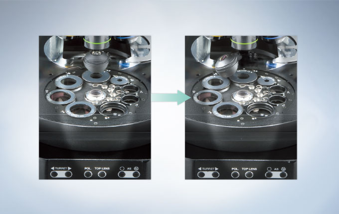 이 리볼빙 노스피스(U-D7REA)는 동시에 7개의 대물렌즈들을 장착할 수 있습니다. 이는 저에서 고배율 사이의 연속적 관찰에 적합하며, 편광(Polarized Light) 관찰과 같은 특수한 목적의 대물렌즈를 사용할 수도 있습니다.