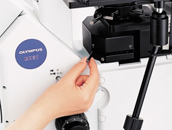 GX51은 명시야,암시야,DIC, 간이편광 관찰이 가능한 모델입니다. 인체공학으로 효율성있게 명시야와 암시야의 변경이 쉽고 간편합니다. 많은 수의 샘플을 검사할 때, 전면부에 위치한 컨트롤부를 통해 쉽고 편리하게 사용자가 사용할 수 있습니다.
