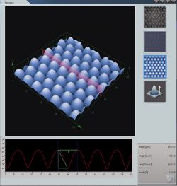 네비게이터 기능은 프로브 현미경에서 얻은 이미지의 필요한 부분을 더 크게 확대하여 관찰 할 수 있습니다. 이미지에서 확대 범위를 커서로 설정하여 스캔을 시작하는 것 만으로 원하는 SPM 이미지를 얻을 수 있습니다. 스캔 범위는 자유롭게 설정할 수 있으므로 관찰 · 측정 효율성이 크게 향상됩니다.