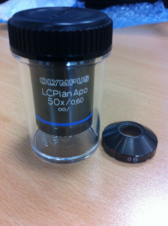 Desc. : LCPLAPO50X/0,6 Long working distance CPlan Apochromat objective with 50x magnification. With working distance of 3 mm, numerical aperture of 0.6 and variable cover correction of 0, 0.7 and 1.1 mm