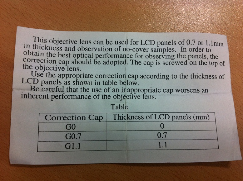 Desc. : Long working distance M Plan Semi Apochromat objective 100X/0.80, W.D. 3.4
