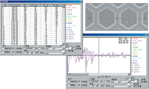 ▪ Area, Length, Major, Minor, Eccentricity, Circularith, Total Median, Total Mean, Total Standard Deviation, Total Skewness, Total kurtosis, Total Coefficient A, Total Coefficient B, Total Corelation, Coe4fficient등 다양한 데이터 측정