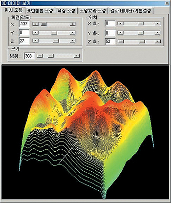 ▪ View Angle의 조정, 밝기 분포에 따른 칼라 설정, Light Source의 설정, WIre-Frame 및 Surface Rendering 지원