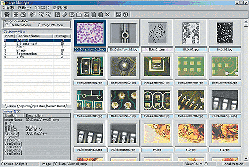▪ 데이터 탐색기 : TDI Plus에서 동작되는 모든 이미지, 결과 데이터 관리를 한 화면에서 관리함으로써, 여러 윈도우가 열려서 동작중일 때도 손쉽게 영상 및 데이터 관리가 가능