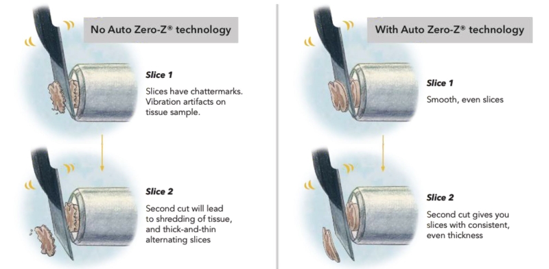 Compresstome® vibratomes 에는 특허받은 Auto Zero-Z® 기술을 적용하여 절단할 때마다 일정하고 균일한 샘플을 얻을 수 있습니다. 또한, Auto Zero-Z® 기술을 이용하여 Calibration에 시간을 소모할 필요가 없어 효율적인 실험을 가능하게 합니다.