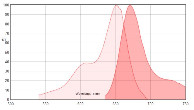 For use with laser between 591~596㎚ Narrow Excitation band, Bandpass Emission